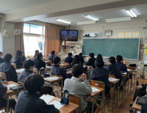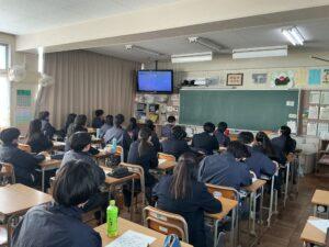 3年生 命の授業学校生活より3年生にて、総合的な学習の時間の一環として「命の授業」を行いました。 当初は講師をお招きして行う予定でしたが、感染症が流行しているため、3年生担当の教員によるテレビ放送での講座を行いました。 講座では、命の尊さや人の成長、これから社会へ出ていく生徒に知っておいてほしいことについて話があり、どのクラスも真剣に聞き入る姿がみられました。 2026年2月3日Posted by HP担当