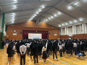新入生歓迎会学校生活より本日、新入生歓迎会が行われました。 前半には、生徒会役員の素晴らしい進行のもと、南中生の一年間の説明や南中クイズ、ブロックカラーの抽選会が行われました。どの学年もとても盛り上がっている様子で、これからの行事が楽しみであると伝わってくるものでした。 後半では、部活動紹介が行われました。各部活動の紹介動画はとても楽しそうで、一年生は入る部活動を悩みながらも、期待を膨らませている様子でした。 2026年4月20日Posted by HP担当